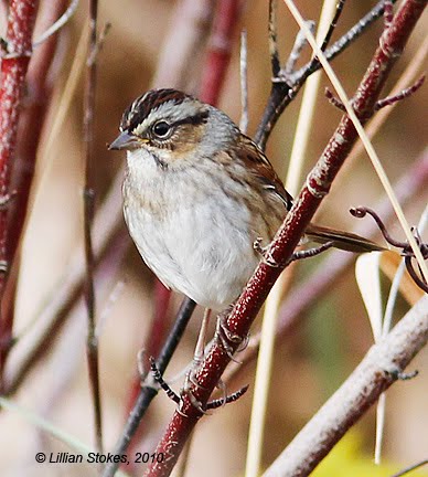 Sparrow ID can be challenging, to say the least. We often see Swamp Sparrows, hanging out appropriately, in swampy areas at the edge of the water. Birds are often habitat dependent and thus the Swamp Sparrow's name.