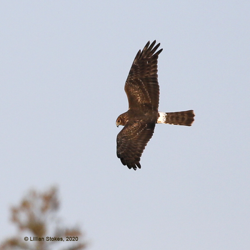 Classic Northern Harrier, white rump a giveaway, hunted our field edge by the pond at 4 pm yesterday as we watched from our deck. We are lucky to get a number of migrating harriers attracted to our big Bobolink field and vegetated pond edge. This one is a female, males (the "gray ghost") are pale gray above, juv. are orangish buff below. Watch for them migrating now.