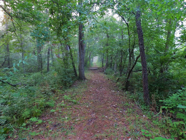 Shortly after I entered the trail I noticed how quiet it became. I could hear dewdrops falling from the trees and the sound of fluttering wings as birds flew from one side to the other was so amplified that you would think it was being played through stereo speakers. The drone of insects buzzing combined with the sound of my own breathing made for a hypnotic effect. My senses became hypersensitive to every sight, sound, and smell. This area is also the site of a former mink farm.